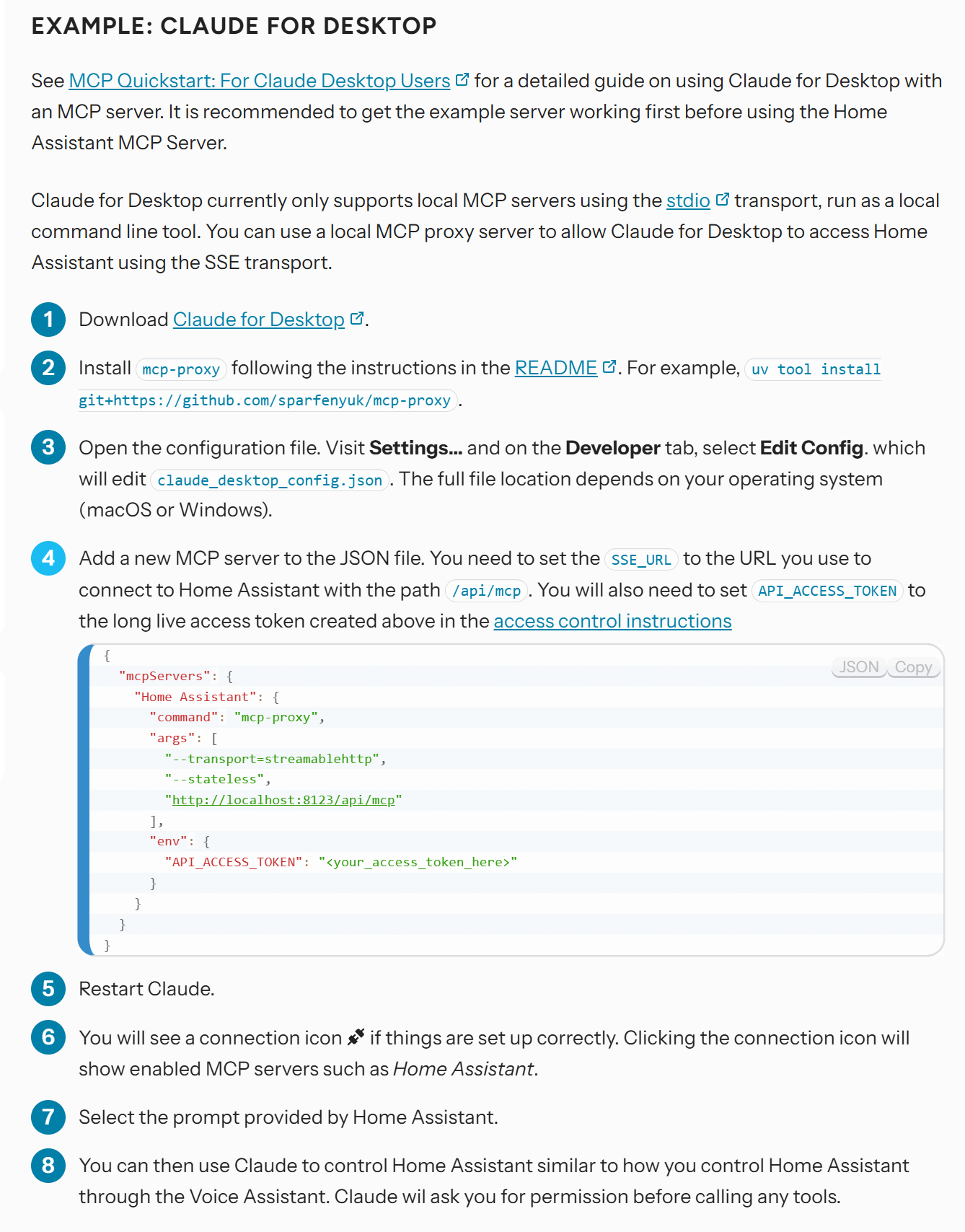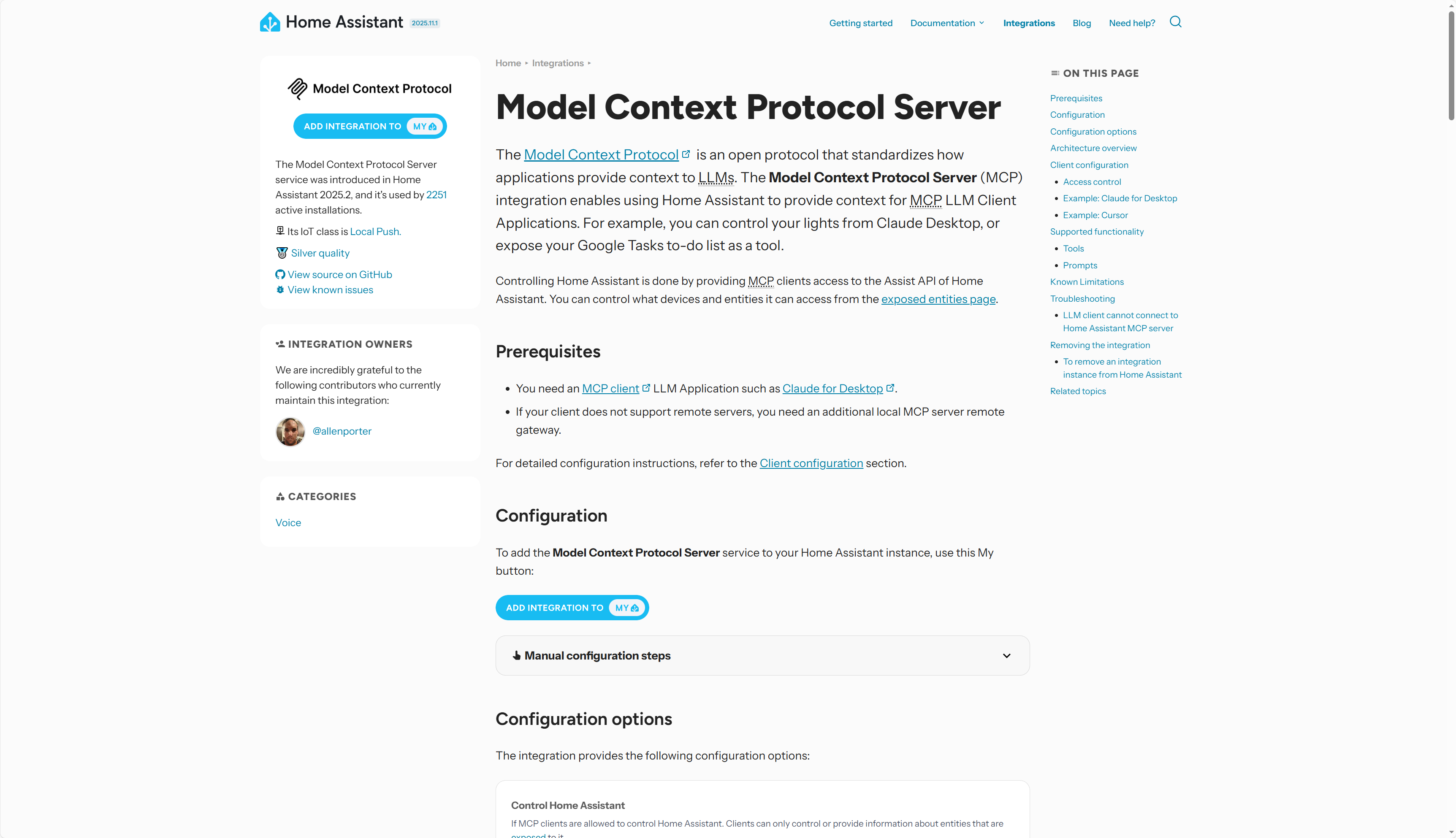 官方文档地址:Model Context Protocol Server - Home Assistant